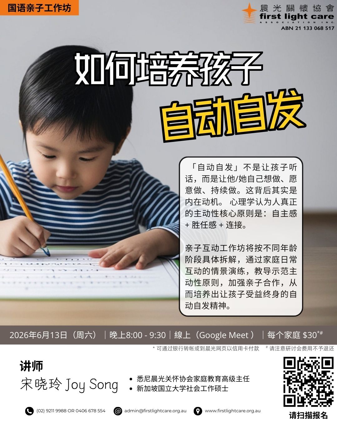 2026-06-13 亲子互动工作坊:如何培养孩子自动自发(国语)